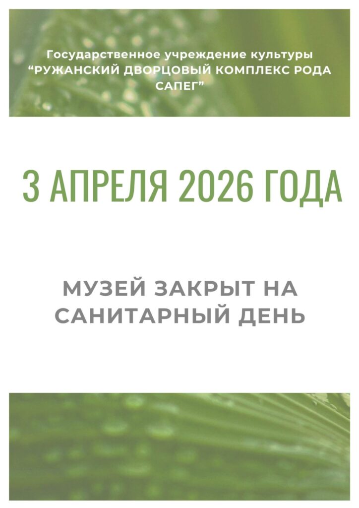Ружанский дворцовый комплекс рода Сапег присоединяется к республиканской акции «Прекрасное в прекрасном» и в честь Международного женского дня 8 марта 2026 года всем женщинам предоставляется бесплатное (льготное) посещение постоянных и временных экспозиций музея. Время работы экспозиций 8 марта 2026 года с 10.00 до 18.00.