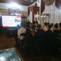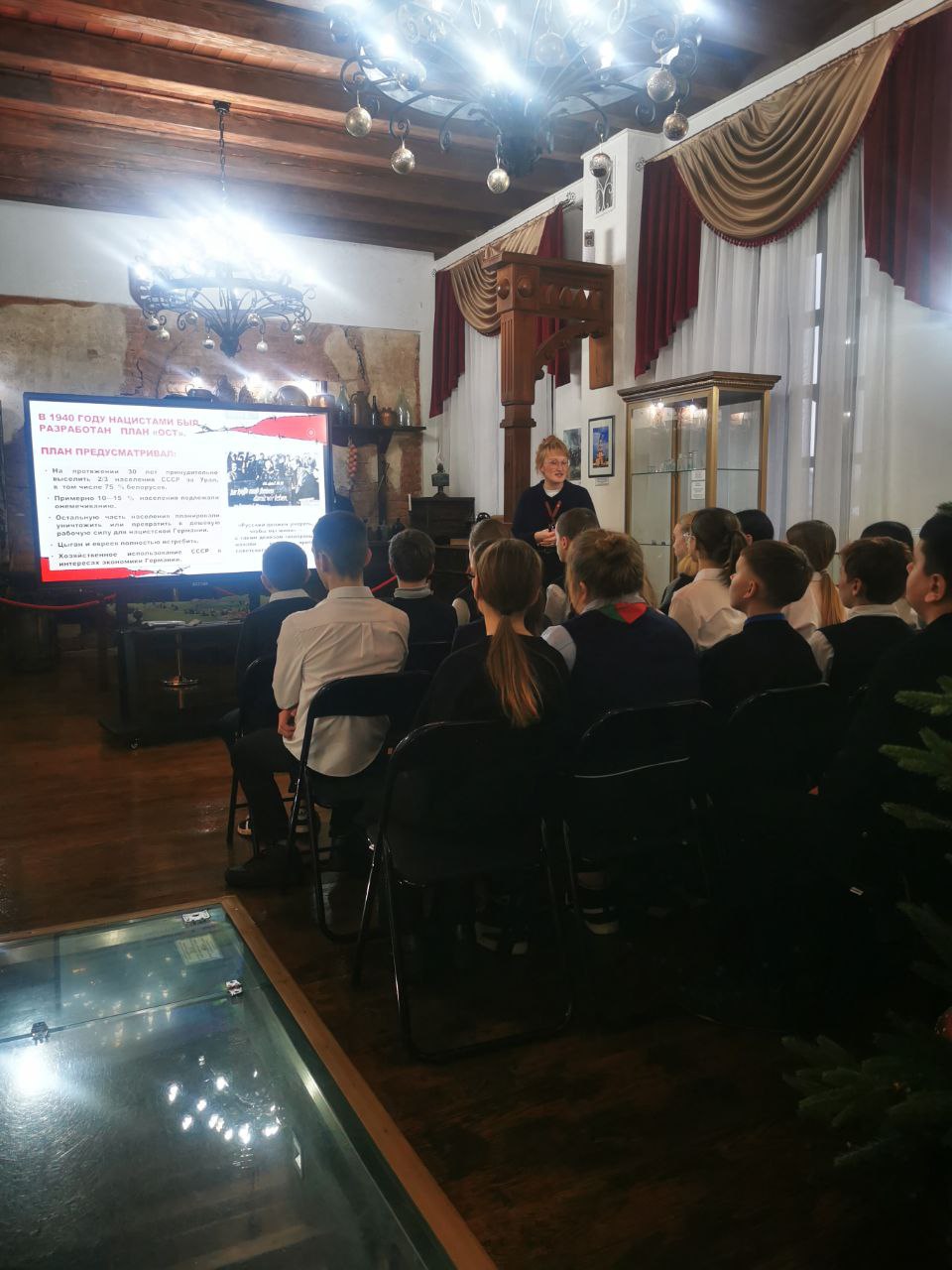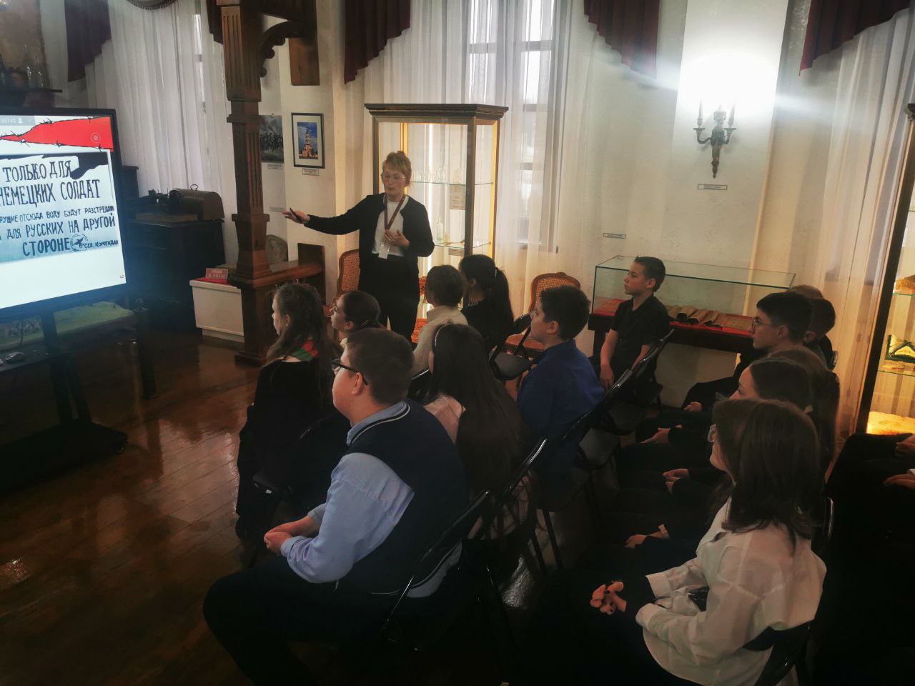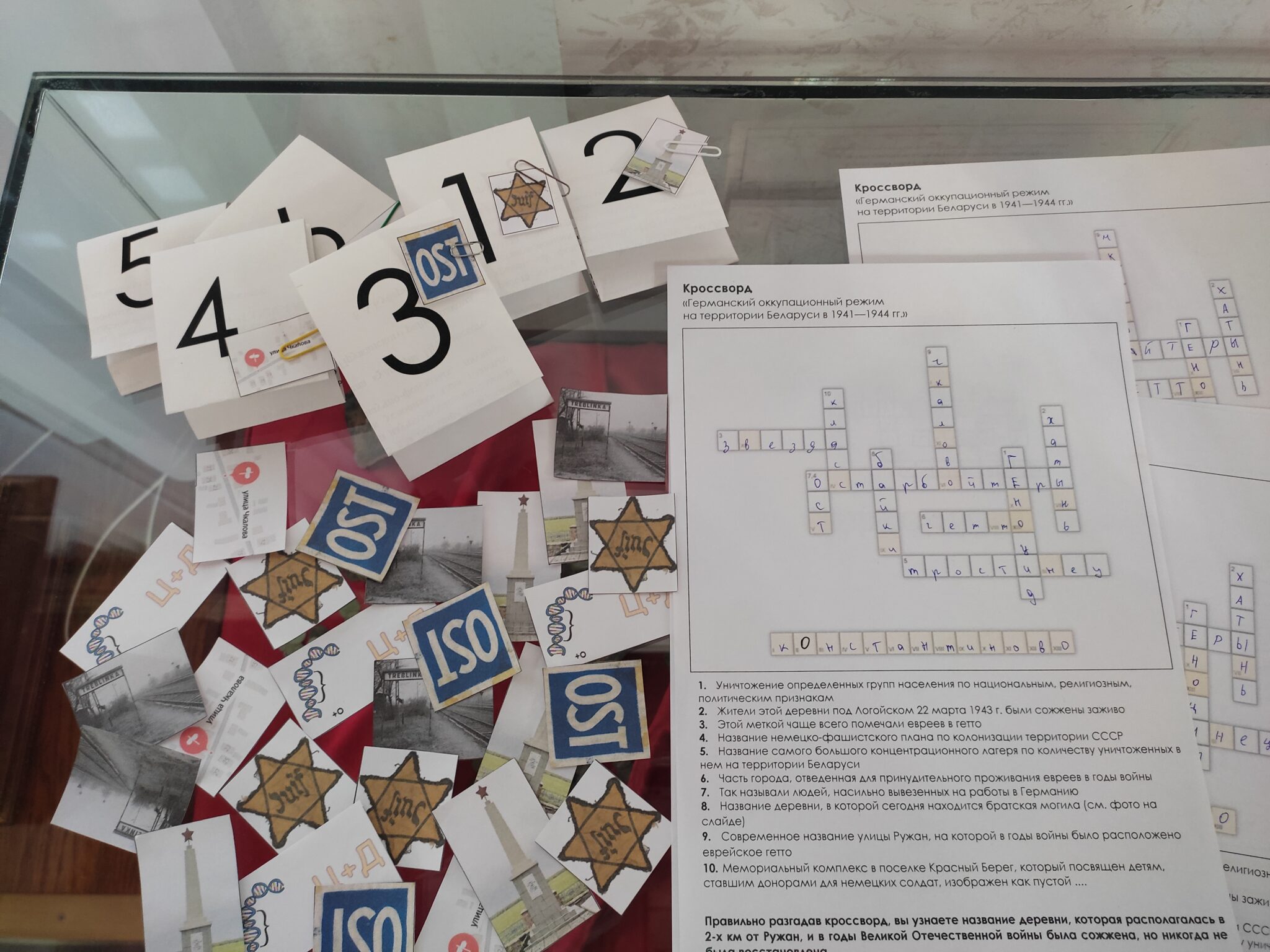 26 и 28 ноября 2025 года для учащихся 7-х классов ГУО «Ружанская средняя школа имени Казимира Марача» были организованы музейно-педагогические занятия на тему «Германский оккупационный режим на территории Беларуси в 1941-1944 годах». В ходе мероприятия гостям музея подробнее рассказали о периоде оккупации Беларуси, условиях жизни военного времени, о создании гетто в Ружанах и судьбе еврейской общины поселка. Занятие было дополнено интерактивными элементами для ребят.